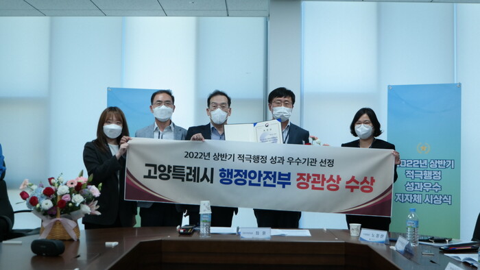 [로컬세계 = 이영원 기자]경기 고양특례시는 지난 27일 행정안전부가 주관하는 ‘2022년 상반기 지자체 적극행정 성과점검’에서 우수기관으로 선정돼 행정안전부 장관 표창을 수상했다고 28일 밝혔다.