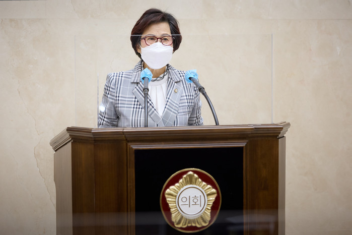 ▲박남숙 의원이 제262회 임시회 제1차 본회의에서 5분자유발언을 하고 있다. 용인시의회 제공 |