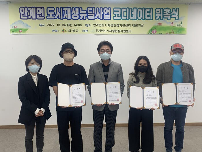 [로컬세계=박상진 기자]경북 의성군은 지난 6일 안계면 도시재생현장지원센터 대회의실에서 ‘안계면 도시재생 활동 코디네이터’ 위촉식을 열었다고 11일 밝혔다.