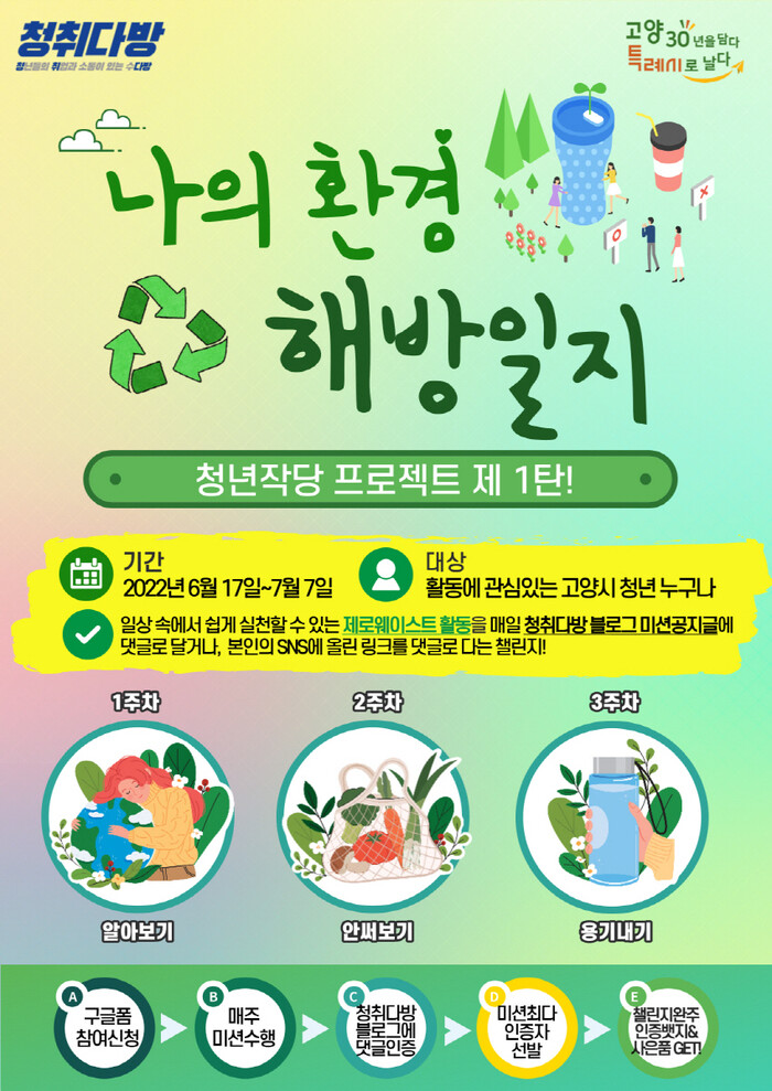 ▲ 청년작당 프로젝트 첫 번째 챌린지 ‘나의 환경해방일지’ 포스터. 고양시 제공 |