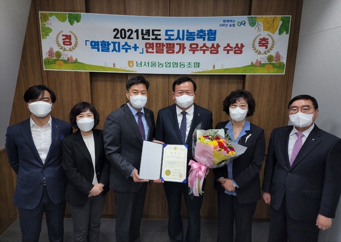 농협중앙회 서울지역본부(본부장 황준구)는 농협중앙회가 실시한 '2021년 도시농축협 역할지수+' 평가에서 남서울농협(조합장 안용승)이 우수 사무소로 선정됐다고 17일 밝혔다.
