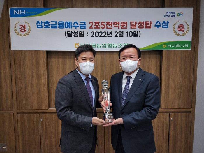한편 남서울농협은 경제사업과 도농상생사업 뿐만 아니라 신용사업에서도 우수한 실적을 거두어 '상호금융예수금 2조 5천억원 달성탑'과 함께 '2021년도 서울농협 지점 업적평가'에서 교대역지점이 최우수상을 수상하여, 선도농협으로서의 위상을 공고히 하였다.