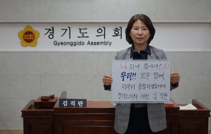 [로컬세계 고기훈 기자]경기도의회 건설교통위원회 김직란 의원(더민주, 수원9)은 지난 12일 ‘코로나19 극복을 위한 희망 릴레이 캠페인’에 동참했다.