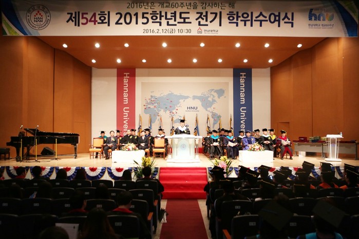 [로컬세계 조윤찬 기자] 한남대학교는 12일 성지관에서 ‘2015학년도 전기 학위수여식’을 열고 학사 2558명과 석사 361명, 박사 52명 등 총 2971명의 졸업생을 배출했다.