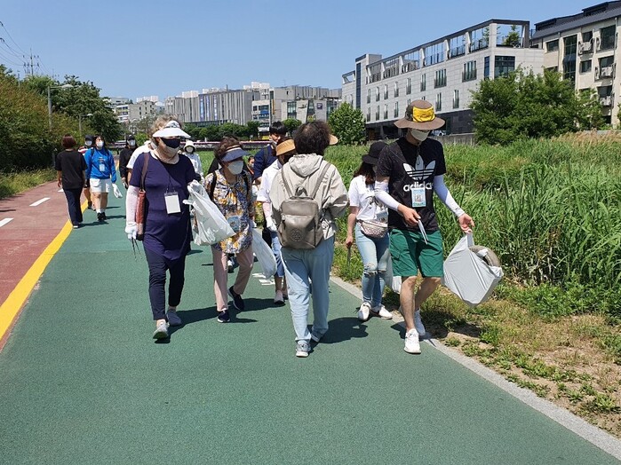 지난 11일 30여 명의 시민은 성복천을 시작으로 수지구청에서 정평천, 신정공원까지 6㎞를 걸으며 쓰레기를 주웠다.