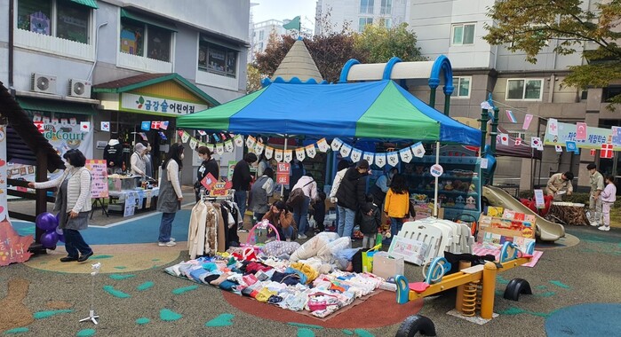 | ▲금강숲어린이집에서 바자회를 하고 있다. 광주시 제공 |
