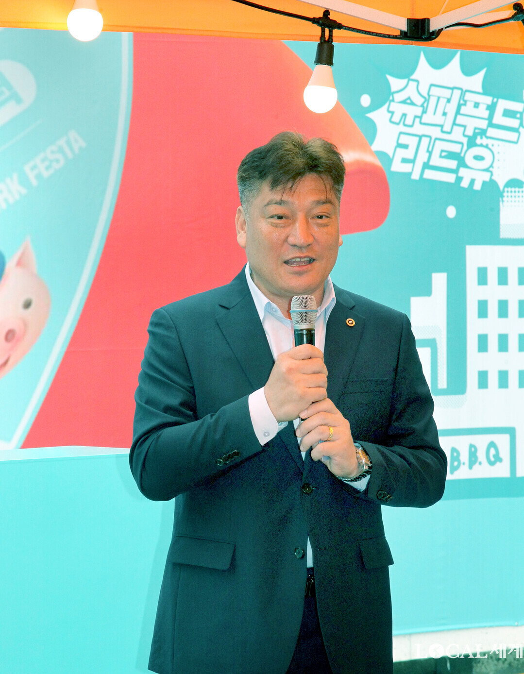 한돈자조금관리위원회가 한돈데이(10월 1일)를 기념해 마련한 ‘2025 SUPER 한돈 페스타 팝업스토어’가 11일 서울 성수동 XYZ SEOUL에서 성황리에 개막했다. 한돈자조금 손세희 위원장이 개회사를 하고 있다.