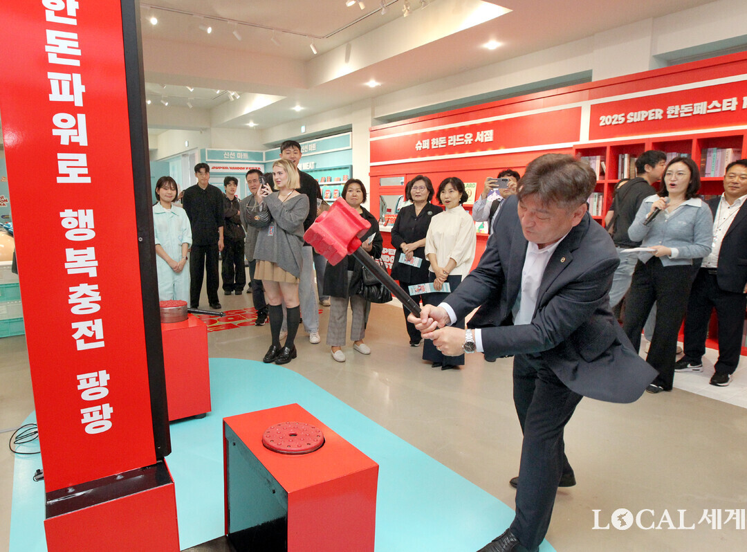 한돈자조금관리위원회가 한돈데이(10월 1일)를 기념해 마련한 ‘2025 SUPER 한돈 페스타 팝업스토어’가 11일 서울 성수동 XYZ SEOUL에서 성황리에 개막했다. 한돈자조금 손세희 위원장과 문미란 소비자단체협의회 회장, 샘표식품 박진선 대표이사, 파트너사 관계자, 한돈 명예홍보대사, 인플루언서 등 참석자들이 미션형 체험을 시연 하고 있다.
