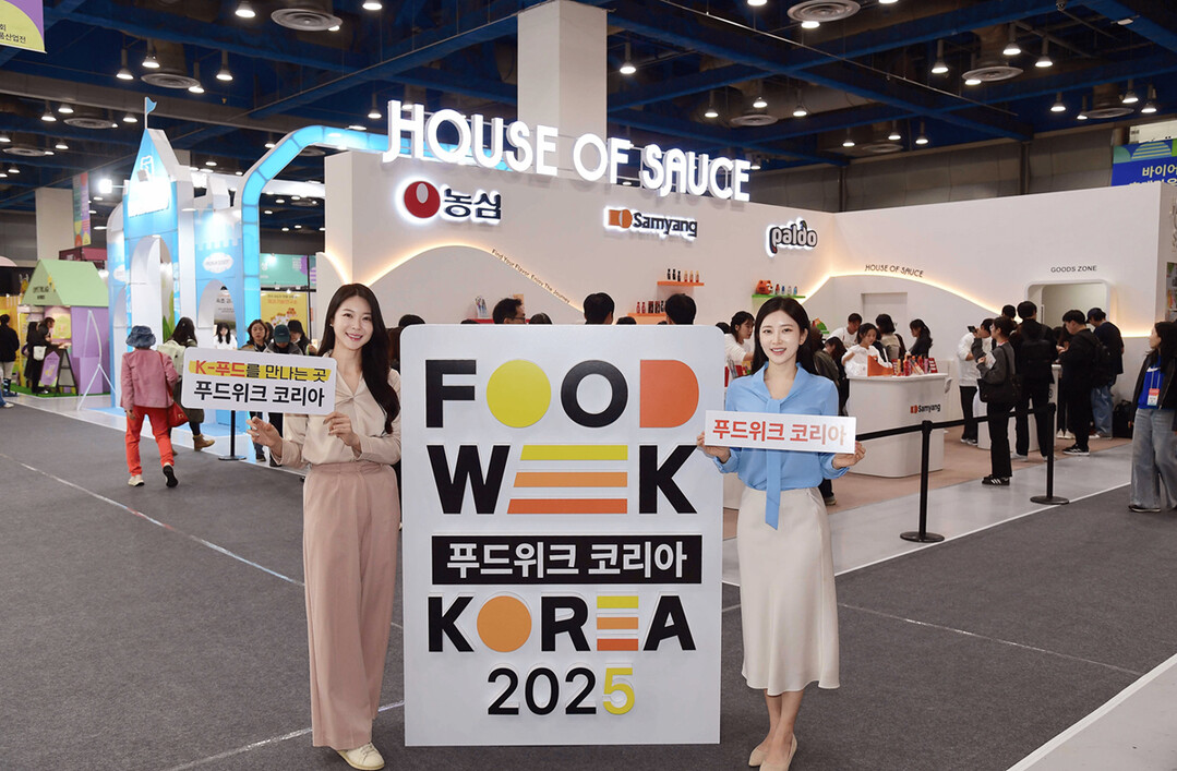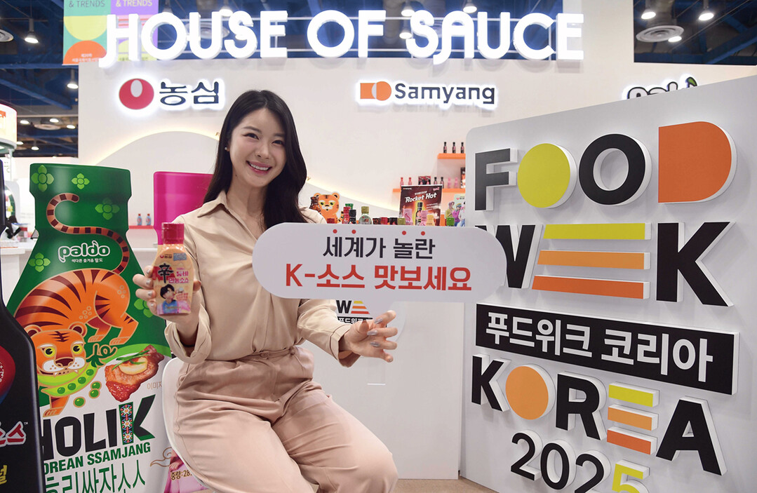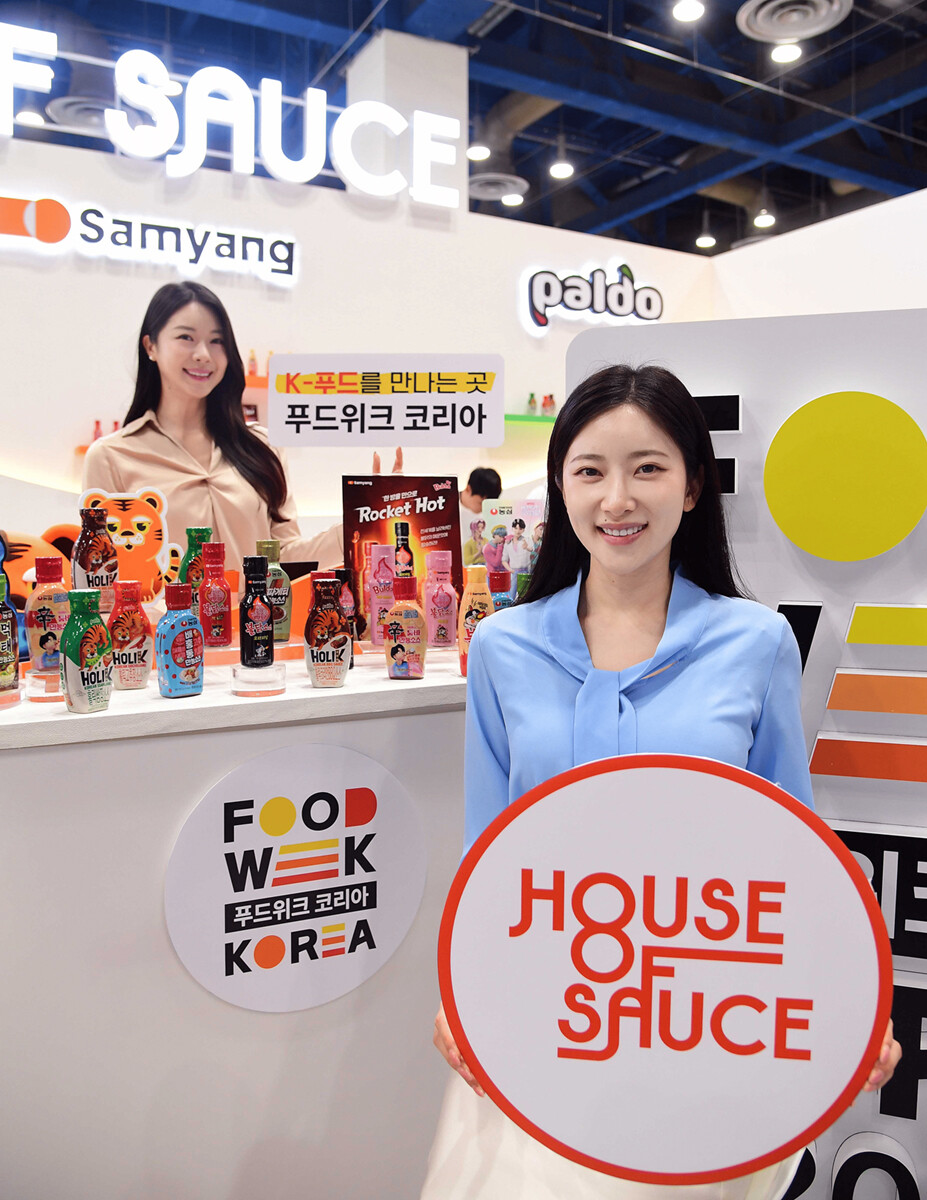 코엑스가 29일 서울 삼성동 코엑스에서 ‘2025 푸드위크 코리아(제20회 서울국제식품산업전)’를 개최한 가운데 ‘하우스 오브 소스 특별관’에서 모델들이 K-소스를 소개하고 있다. 이 전시회는 하반기 최대 규모 식품 전시회로 42개국, 950개 사의 1,532부스가 참가하며 ‘FOOD RE:DEFINED(푸드 리:디파인드) 식탁:혁명’을 주제로 다양한 식품 트렌드를 선보인다.