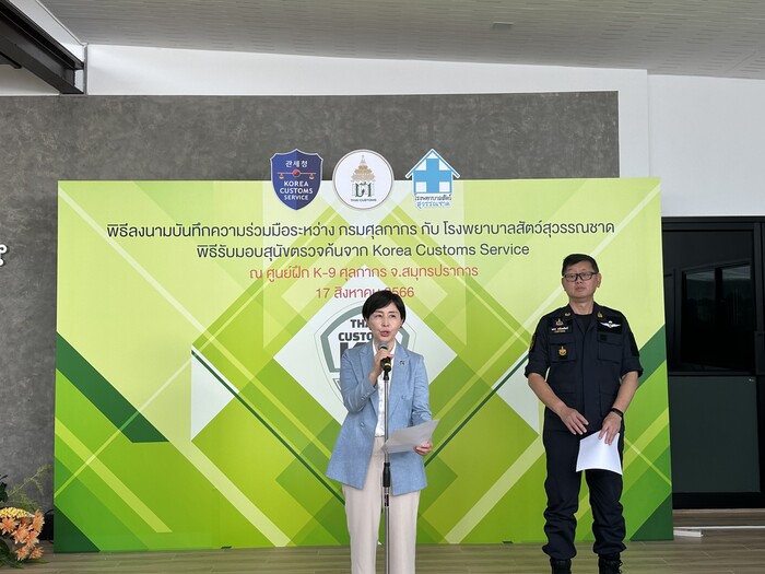 팟차라 아난타실파 태국 관세총국장은 “대한민국 관세청의 도움에 깊이 감사드리며, 기증해 주신 마약 탐지견을 가족처럼 보살피겠다고 약속드린다”며, “앞으로도 양국이 마약 단속의 국제공조 체계를 더욱 굳건히 이어나갈 수 있기를 기대한다”고 밝혔다.