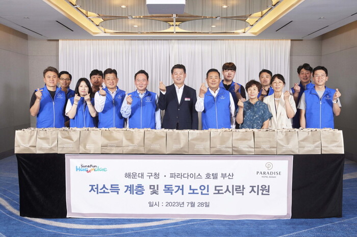 파라다이스 호텔 부산은 해운대구 우1동 행정복지센터와 협력해 소외이웃의 식사를 지원하는 ‘사랑의 도시락’ 캠페인을 전개한다고 밝혔다. 호텔 인근에 거주하는 독거 노인 및 저소득층을 위해 매주 금요일마다 약 50가구의 도시락 비용을 전액 지원한다. 이번 캠페인을 통해 향후 9월까지 약 500개의 도시락이 전달될 예정이다.