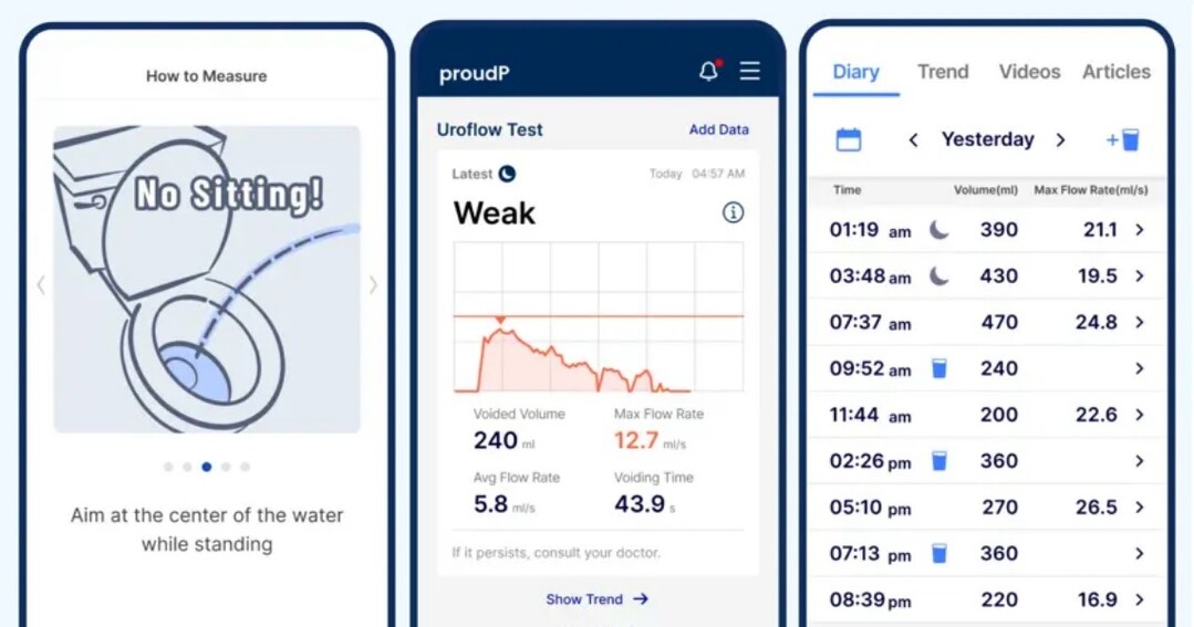 이에 연구팀은 배뇨 상태를 직접 검사할 수 있는 proudP 앱을 개발했고, 해당 앱의 신뢰성을 확인하기 위해 전향적 연구를 시행했다. proudP 앱은 소변이 변기 물에 닿을 때 발생하는 소리를 분석하는 ‘음향 배뇨 측정 기술’을 활용한다. 별도 장비 없이 스마트폰을 변기에 향하게 놓고 소변을 보면 앱이 최대 배뇨 속도와 배뇨량을 측정해 알려준다.