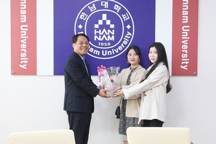 [로컬세계 조윤찬 기자]한남대학교 총장실에 26일 오전 10시 특별한 손님이 찾았다. 한남대 생활관(기숙사) 사생회 신단비 회장(기독교학과 4년)과 황주영 부회장(특허법학전공 4년)이었다. 학생들은 부끄러운 듯 이덕훈 총장에게 작은 화분 하나를 전달했다.