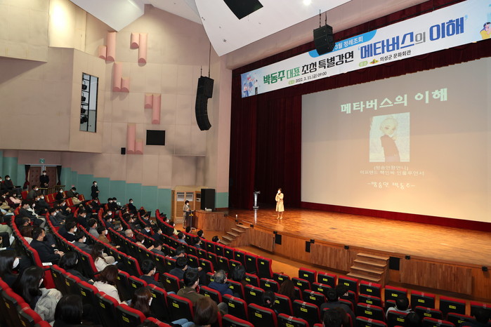 특히 이날 강의는 박동주 강사를 초빙해 메타버스 콘텐츠가 우리 사회에 밀접한 산업으로 자리 잡아가고 있는 만큼 공무원들도 메타버스에 대한 명확한 정의에 대해 알아보고, 더 나아가 단순히 가상현실이 아닌 현실과 밀접하게 상호작용하는 플랫폼으로 활용해 행정 분야에 접목할 수 있는 능력을 계발하고자 진행됐다.