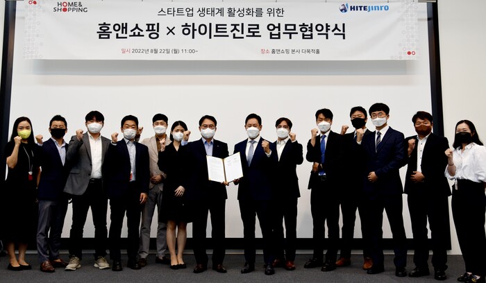 하이트진로는 지난 22일 홈앤쇼핑 본사에서 허재균 하이트진로 상무, 이일용 홈앤쇼핑대표이사 등이 참석한 가운데, 스타트업 생태계 활성화를 위한 상호협력 업무협약식(MOU)을 가졌다. 이번 MOU를 통해 하이트진로와 홈앤쇼핑의 공동 활동으로 상호간 보유한 역량을 활용해 스타트업과 중소기업의 성장을 위해 적극 협력해 나아간다는 계획이다.