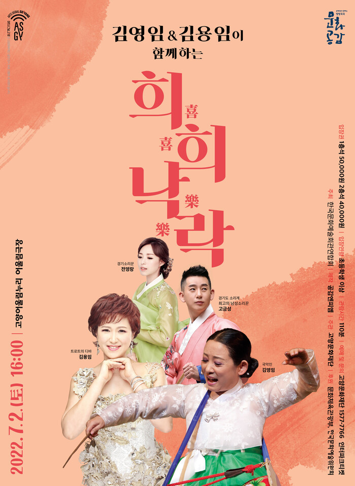 ‘김영임 & 김용임과 함께하는 희희낙락喜喜樂樂’ 콘서트는 2022년 방방곡곡 문화공감 민간예술단체 우수프로그램 지원사업 선정작으로 한국문화예술회관연합회가 주최하고 고양문화재단과 ㈜공감엔피엠이 주관, 문화체육관광부와 한국문화예술위원회가 후원하며 사업비 일부를 문예진흥기금으로 지원받아 진행한다.