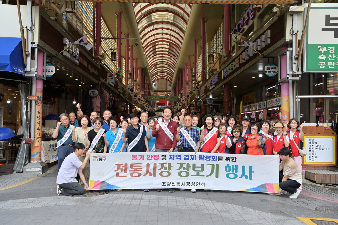 이번 행사는 침체된 경제 상황과 이용객 감소 등으로 어려움을 겪고 있는 전통시장 상인들을 격려하고, 주민들의 전통시장 이용을 장려하기 위한 취지로 마련됐다. 행사 기간 동안 초량전통시장을 포함한 동구 관내 전통시장 9곳을 순회 방문하며 상인들과 소통하고 지역민과 함께 장보기를 실천했다.