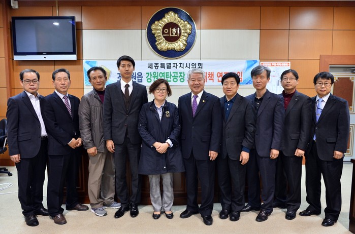 ▲지난 13일 세종시의회 3층 회의실에서 강연연탄공장 운영대책 연구모임 의원들이 제8차 회의를 갖은 뒤 기념촬영을 하고 있다. |
