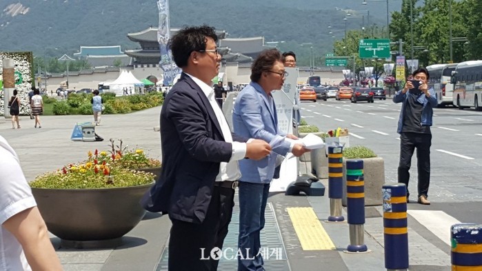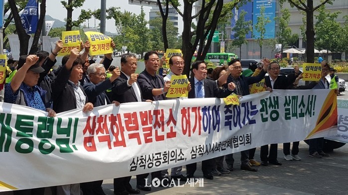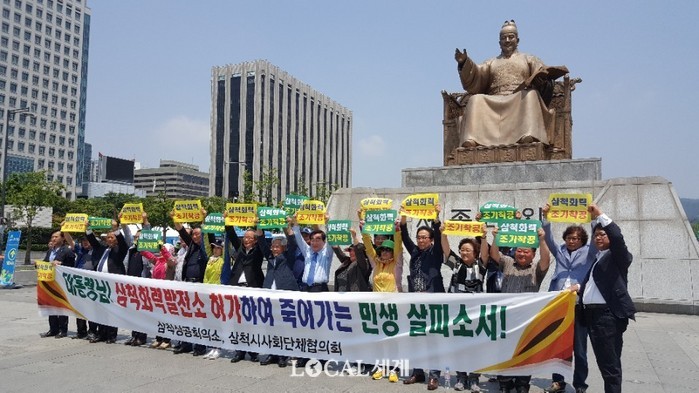 [로컬세계 김재덕 기자]강원도 삼척시상공회의소와 사회단체협의회 단체장은 14일 광화문 광장에서 포스파워 삼척화력발전소 인허가 및 조기착공 촉구하는 시위를 가졌다.
