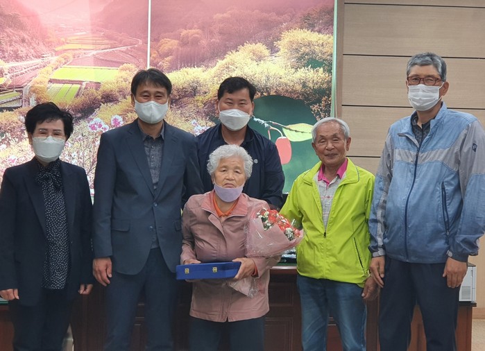 이번 전수식은 어버이날 기념행사가 취소되고 사곡면사무소에서 수상자 어머니와 아들이 참석해 간소하게 진행됐다.