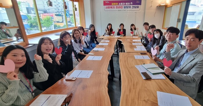간담회는 사회복지 핫라인으로 활동 중인 사회복지공무원 11명과 관계자 등 15명이 초대되어 △ 추진 경과보고 △ 사회복지 핫라인 운영현황 △ 미담사례 등을 공유하는 자리로 마련됐다.