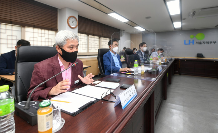 ▲곽상욱 공동위원장(오산시장) 등 LH대표와 첫 간담회 모습. 오산시 제공 |