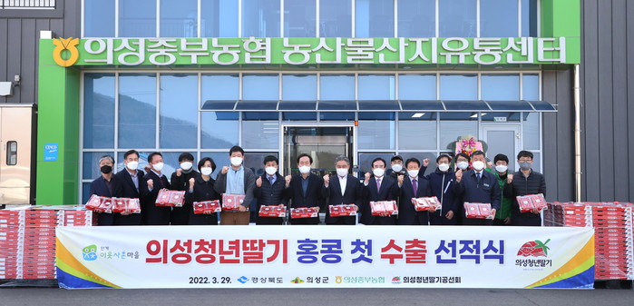이번 수출길을 오르는 의성청년딸기는 경북도와 의성군이 함께 추진 중인 이웃사촌시범마을 연계사업으로 2020년도부터 정착한 19명의 청년들이 생산하고 있다. 스마트팜 창업농으로 구성된 의성청년딸기 공선회는 이날 첫 선적을 시작으로 올해 총 10톤, 10만불의 딸기를 홍콩으로 수출할 계획이다.