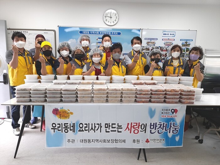 대원동 지역사회보장협의체(공공위원장 모천우, 민간위원장 윤상식)가 직접 만든 밑반찬 세트(북어콩나물국, 소불고기 등)를 관내 독거 어르신 등 취약계층 50가구에 전달했다. 동시에 안부도 확인하는 등 복지사각 지대 발굴에 노력하고 있다. 해당 사업은 정기적으로 매월 실시하는 대원동 협의체의 특화사업이다.