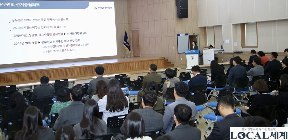 [로컬세계 = 김명진 기자]지방선거를 앞두고 공직사회의 정치적 중립성 확보가 강조되고 있다. 선거법 위반을 사전에 차단하기 위한 교육이 현장에서 진행됐다.