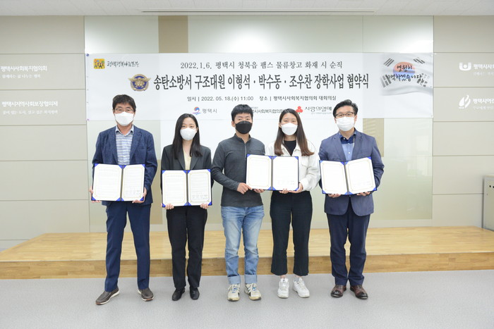 2022년 1월 6일 평택시 청북읍 소재 냉동창고에서 화재 진압 도중 순직한 송탄소방서 소방공무원 이형석 소방경.박수동 소방장.조우찬 소방교 유족들이 평택시 지역사회 장학기금으로 1억 5천만원을 기부하기로 했다.