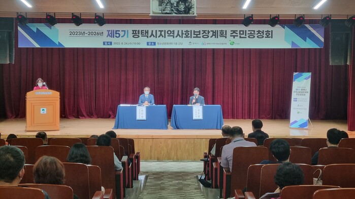 [로컬세계=김병민 기자]경기 평택시(시장 정장선)는 지난 24일 청소년문화센터 공연장에서 시민, 사회복지 관련기관·단체 종사자 및 지역사회보장협의체 위원 등 150여 명이 참석한 가운데 제5기 지역사회보장계획 수립을 위한 공청회를 개최했다고 25일 밝혔다.