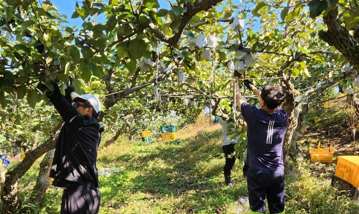 지난 5월 배 적과작업 지원에 이어 이번 수확 작업에도 적극 참여에 그 의미를 더했다.