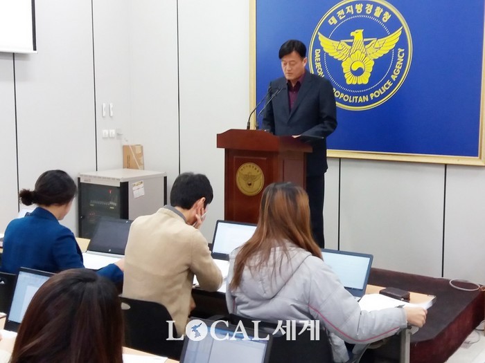 ▲김영수 대전지방경철청 광역수사대장이 10일 브리핑룸에서 기자회견을 열고 대포물건 불법 유통시킨 일당들에 대해 설명하고 있다. 조윤찬 기자. |