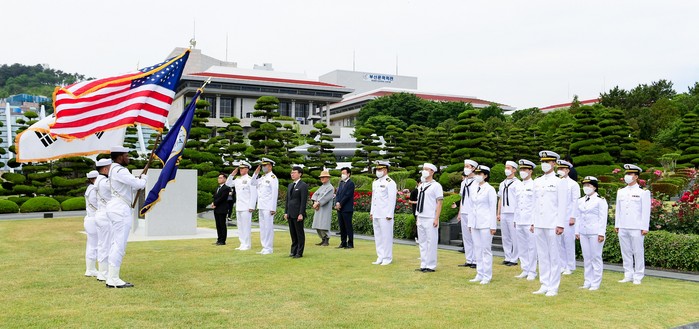 추모행사는 마크 세이퍼(Mark Schafer, 준장) 주한미해군사령관이 주관하는 가운데 데이비드 제 주부산미국영사, 김지훈(대령) 해군작전사령부 참모장 등 한·미 해군 장병 30여 명이 참가했다.