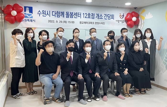 수원시는 9월 29일 수원시다함께돌봄센터 12호점(영통구 광교호수로152번길 23)에서 돌봄센터 12호점 개소 기념 간담회를 열고, 효율적인 운영 방안 등을 모색했다.
