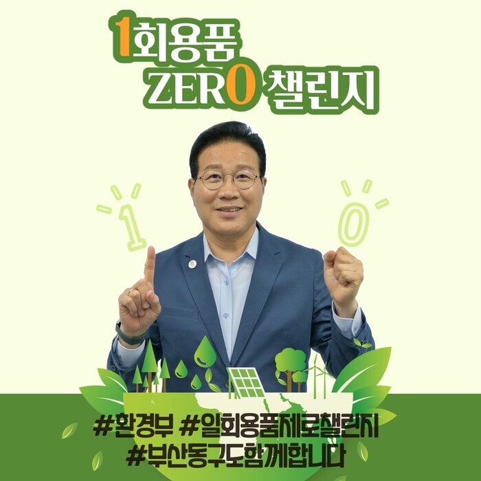 [로컬세계 부산=맹화찬 기자]부산 동구청장 김진홍은 오은택 부산 남구청장의 지목으로 지난 14일 1회용품 사용은 줄이고, 다회용품 사용은 늘리는 범국민 실천 캠페인인 '1회용품 제로 챌린지'에 동참했다.