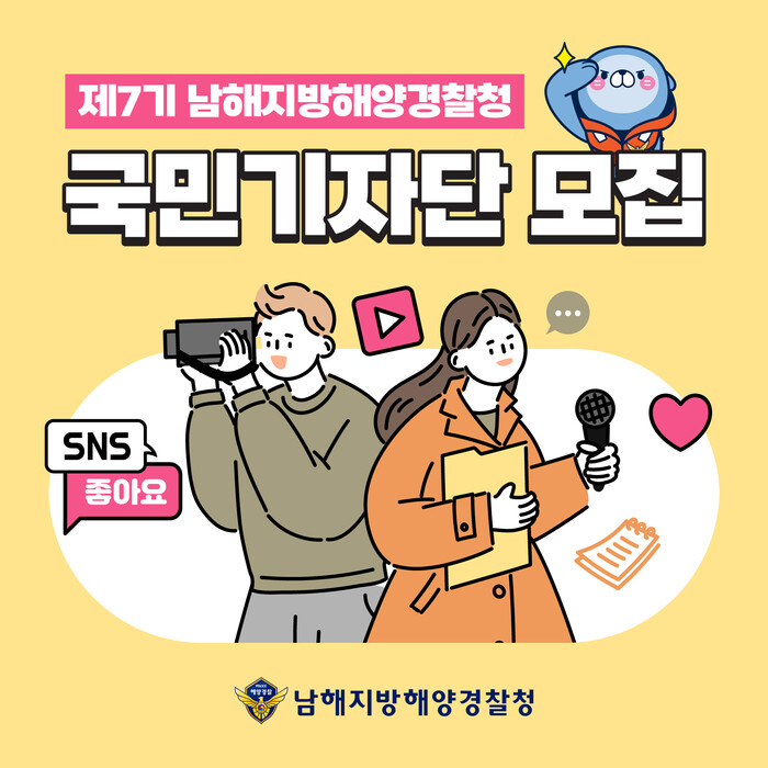 [로컬세계 부산=맹화찬 기자]남해지방해양경찰청(청장 채광철)은 청년의 눈높이에 맞춰 해양경찰의 주요 정책을 알릴 “2024년 국민기자단” 20명을 오는 31일까지 14일간 모집한다고 밝혔다.