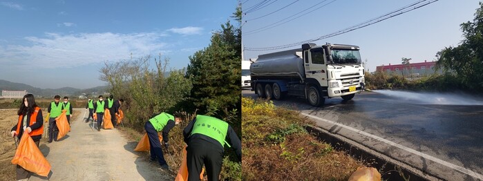 이날 음성축산물공판장 직원 50여명은 인근 마을 도로주변과 하천에 쌓인 빈병, 폐비닐, 오물 등 각종 쓰레기를 집중 수거하며 구슬땀을 흘렸다. 또 살수차량을 동원해 마을 도로변 물청소를 실시하는 등 환경정화에 힘썼다.