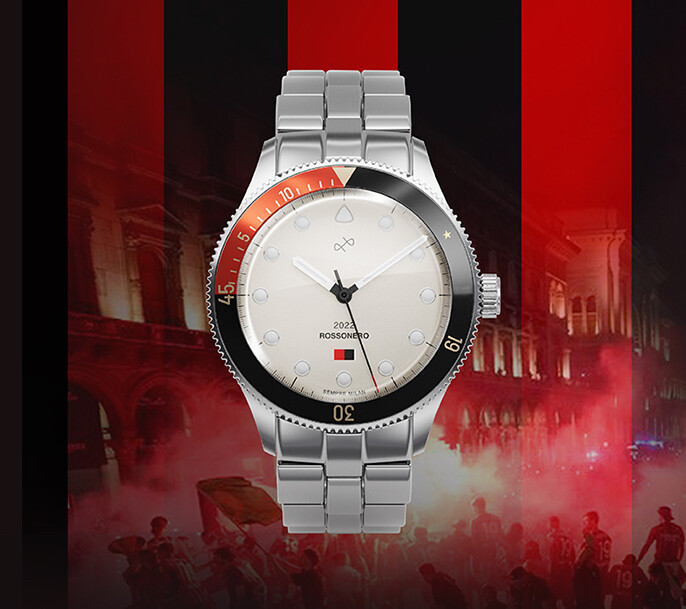 AC 밀란의 팬들을 위한 이 타임피스는 사파이어 크리스탈 글라스와 316L 고정밀 스테인리스 스틸 케이스 등 퀄리티 높은 원자재와 AC 밀란을 상징하는 다양한 디테일들이 시계에 적용되었다.