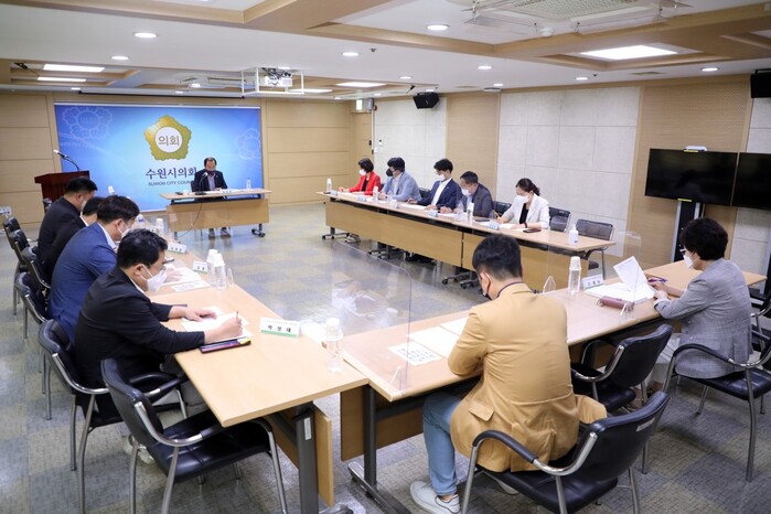 [로컬세계=김병민 기자]경기 수원특례시의회 예산결산특별위원회(위원장 이찬용)는 4일 의회 세미나실에서 오는 8월 말 예정인 제370회 임시회를 앞두고 효율적인 예결특위 활동을 위해 예결특위 위원간 소통의 자리를 가졌다고 밝혔다.