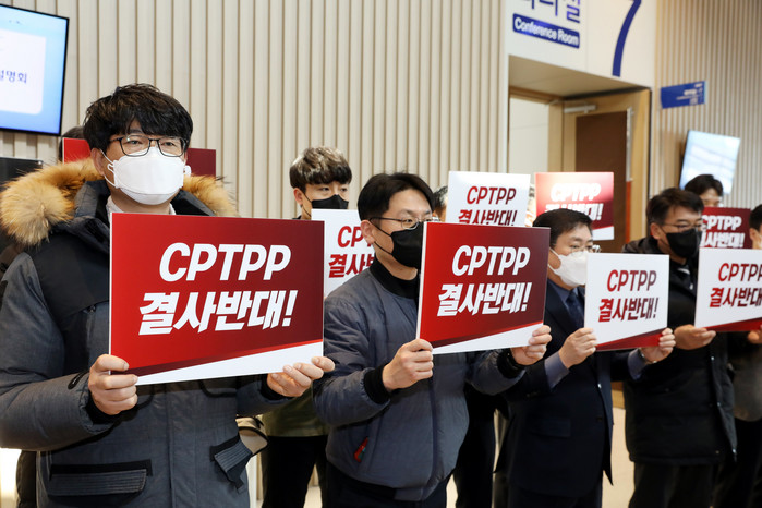 수산업계는 이날 “피해 대책 없는 설명회는 CPTPP 가입을 정당화하기 위한 면피용에 불과하다”며 설명회를 강행하려는 정부에 반발 수위를 높였다.