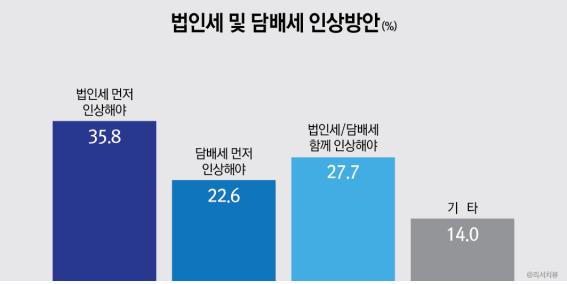 ▲ 법인세ㆍ담뱃세 인상 “법인세 먼저 인상하거나 함께 인상해야(63.5%)” © 로컬세계 |