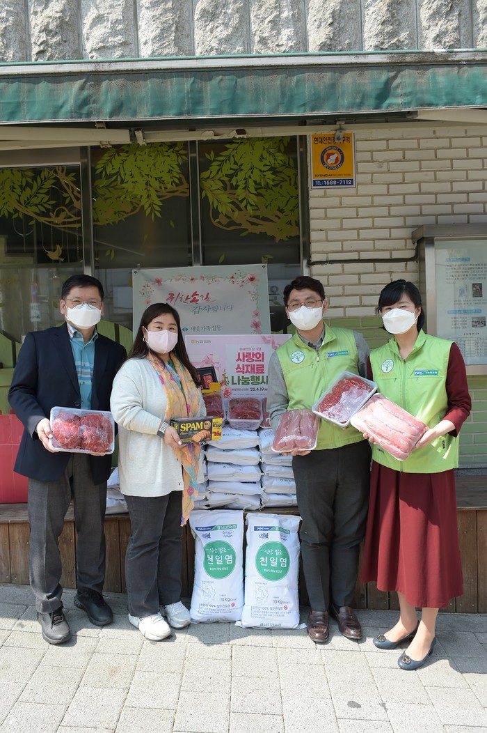 ▲농협유통 창립 27주년을 맞이하여 농협유통 임직원들은 19일(화) 새빛맹인선교회에 방문해 ‘사랑의 식재료 세트’를 전달하였다. |
