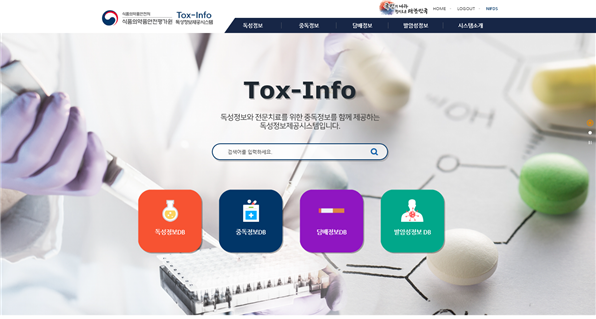 ‘톡스인포’는 식품·의약품 등에 사용되는 화학물질의 독성정보, 응급치료 시 활용 가능한 중독정보, 담배에 포함된 유해성분정보 등 다양한 독성정보를 제공하고 있는 사이트다.