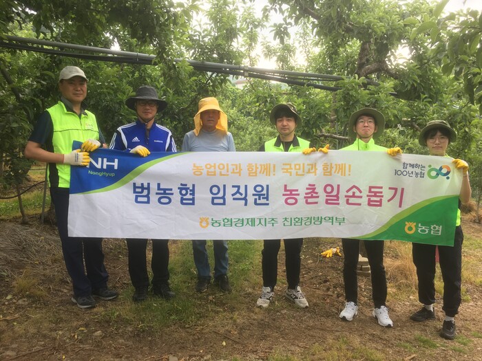 농협경제지주 친환경방역부 직원들은 지난 2일 가평군 소재 사과 재배 농가를 방문해 농번기 농촌 일손돕기를 실시했다고 5일 밝혔다.