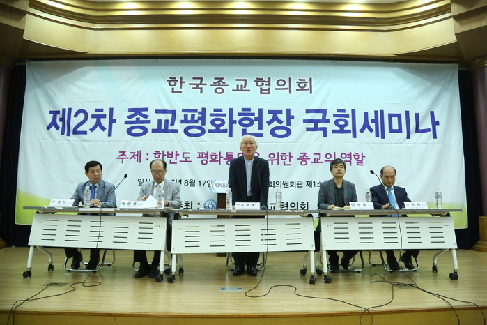 [로컬세계 라안일 기자](사)한국종교협의회가 17일 국회 의원회관 제1소회의실에서 ‘한반도 평화통일을 위한 종교의 역할’이란 주제로 제2차 종교평화헌장 세미나를 개최했다.