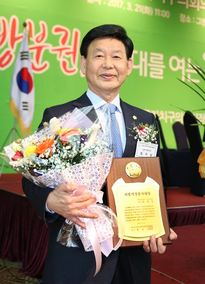 최 의장은 수상소감에서 “그동안 의정활동을 하는데 적극적으로 도움을 주신 지역주민들과 동료의원들에게 감사하다”며 “앞으로도 주민의 복리증진과 지역발전을 위해 봉사하고 헌신하는 의원으로 지역 현안문제 해결과 민생조례 발굴 등 지역주민들에게 감동과 희망을 안겨줄 수 있도록 항상 노력하겠다”고 말했다.