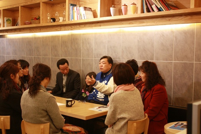 ▲더불어민주당 화성병 오일용 예비후보가 8일 세계여성의 날을 맞아 여성 유권자들을 맞나 대화를 나누고 있다. |