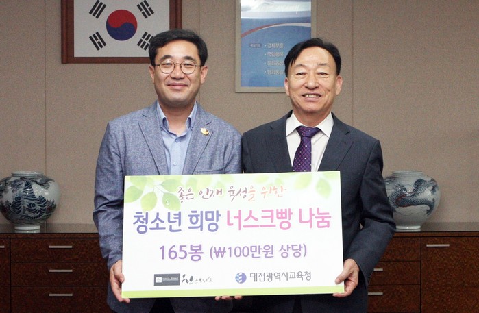 한송철 한스브레드 대표는 “작은 정성이지만 대전지역의 어려운 학생들에게 기쁨을 줄 수 있어 행복하다”며 “앞으로도 대전교육청이 추진 중인 다양한 활동에 관심을 갖고 적극 후원 하겠다”고 말했다.