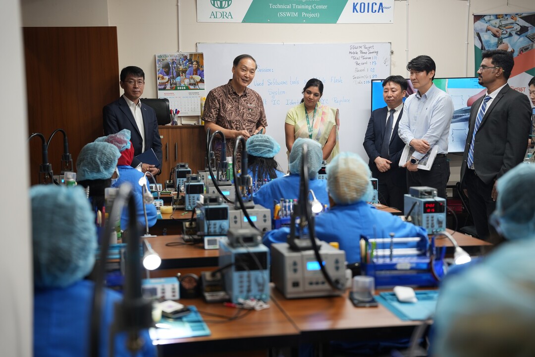 3일(현지시간), 장원삼 코이카 이사장(왼쪽 두번째)이 코이카가 국제개발구호단체 아드라코리아와 여성 자립 지원 사업을 펼치고 있는 방글라데시 수도 다카 소재의 밀풀 여성직업훈련센터를 방문해 훈련 과정과 운영 현황을 점검하고 있다.